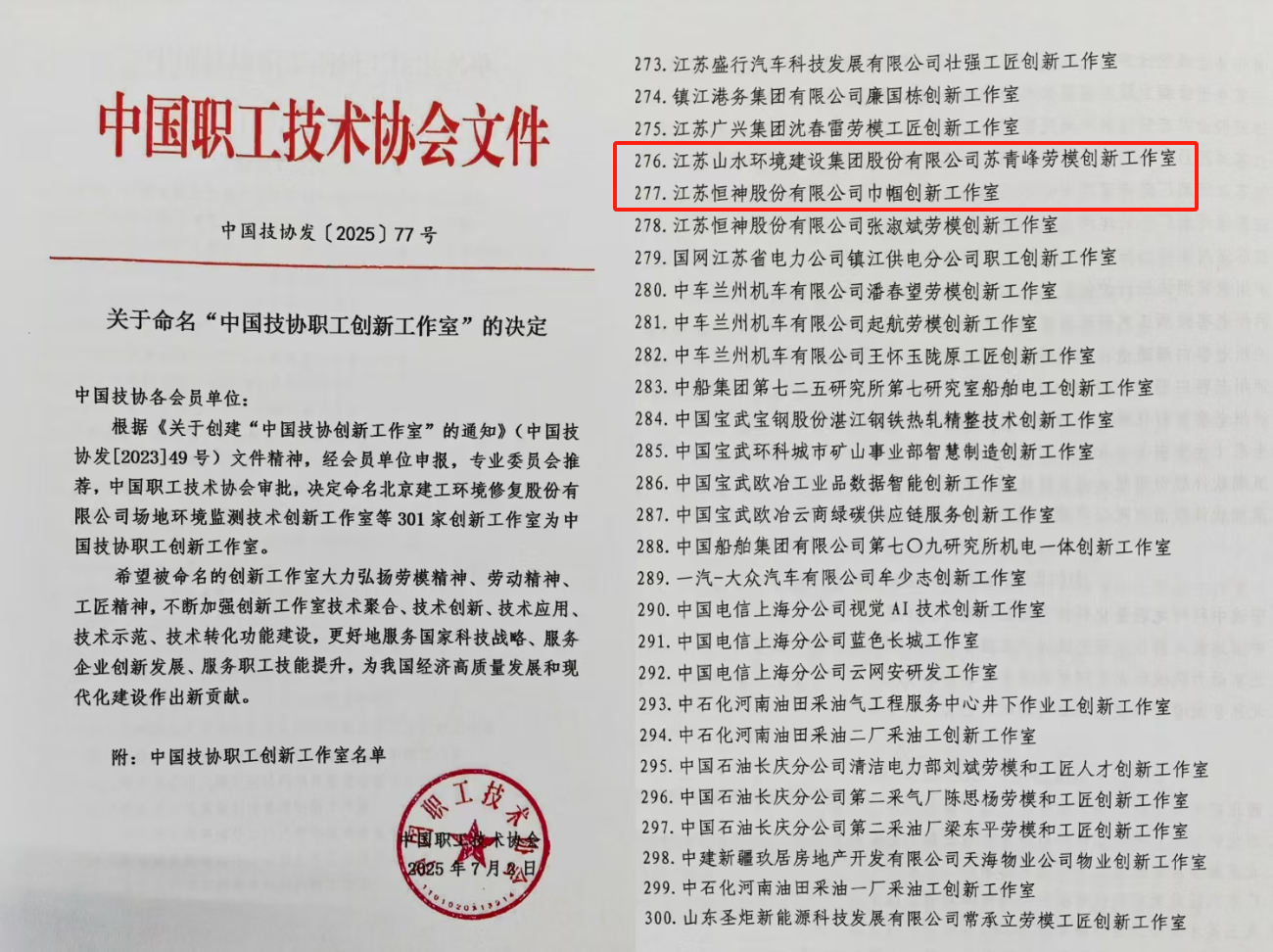 近日,中国职工技术协会公布《关于命名“中国技协职工创新工作室”的决定》,首批“中国技协职工创新工作室”名单正式揭晓,江苏恒神股份有限公司巾帼创新工作室、张淑斌劳模创新工作室两个创新工作室凭借过硬的技术...