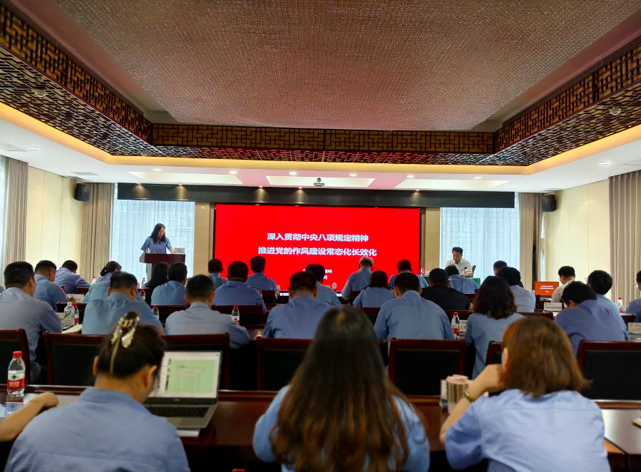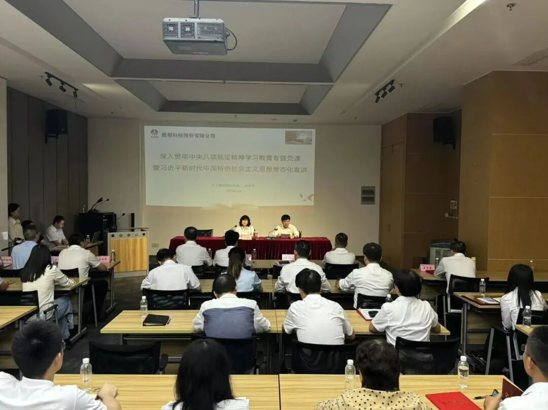 财务总监吴蕊莉到胜帮科技公司讲授深入贯彻中央八项规定精神学习教育专题党课。胜帮科技公司领导班子成员、中层干部及全体党员参加学习。